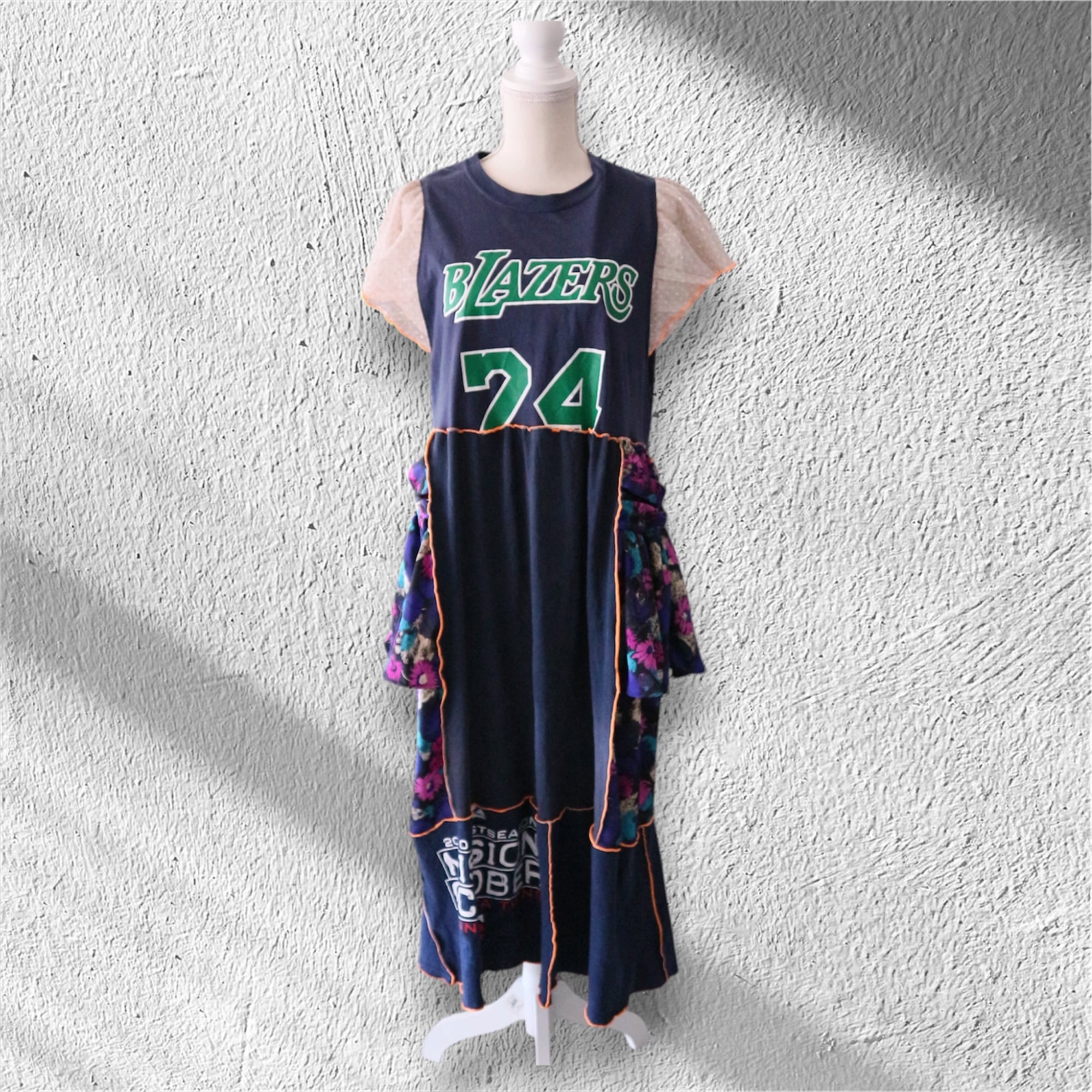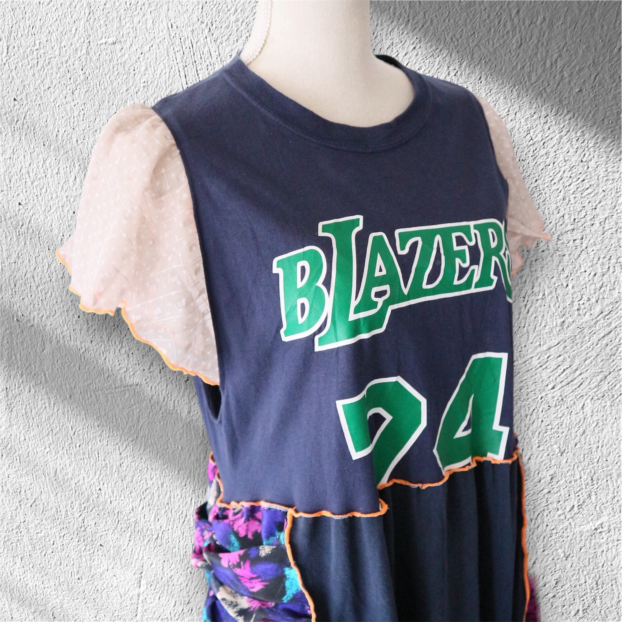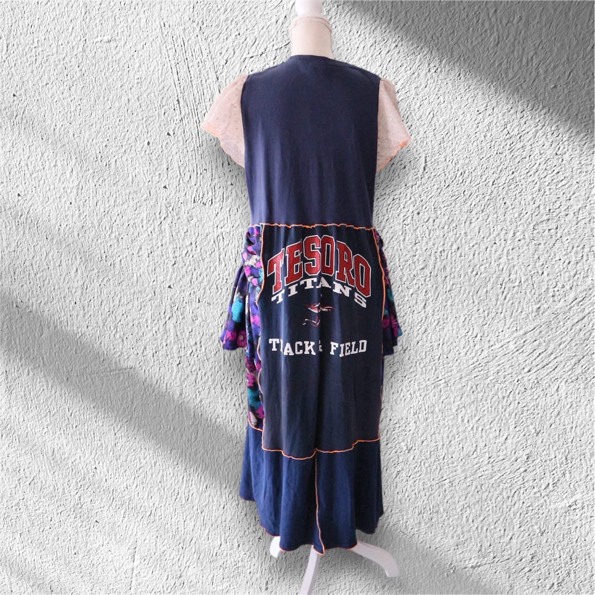US古着Tシャツや古着ワンピースの生地を組み合わせたリメイクワンピース✂︎ー
