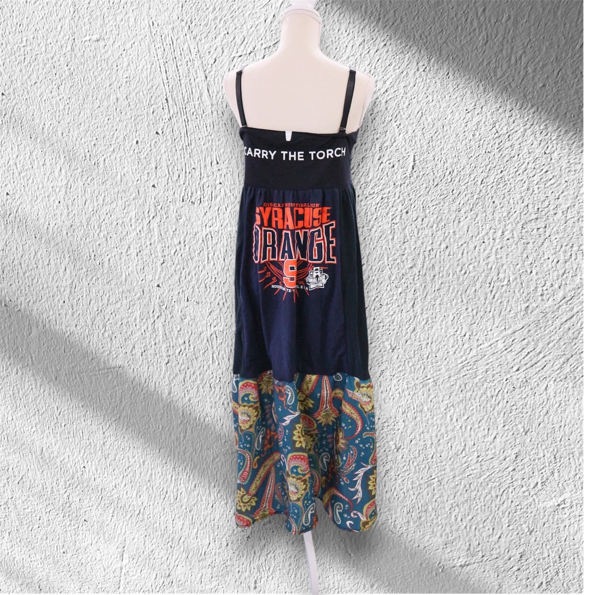 US古着Tシャツやワンピースの生地を何枚も組み合わせて作ったリメイクワンピース。⠀